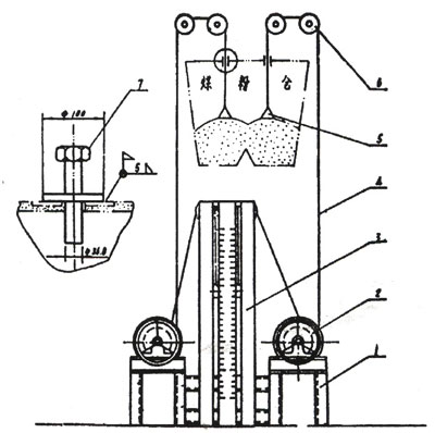 1、座架 2、绞车 3、标尺 4、钢丝绳