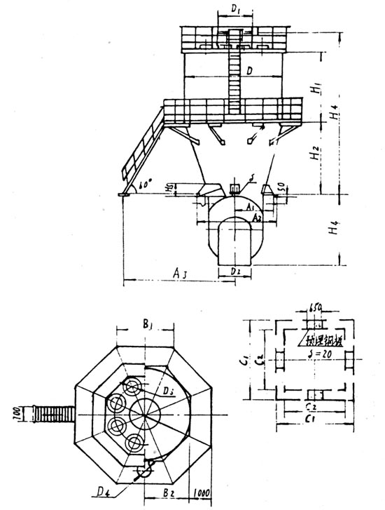 C、 如设计单位和用户单独选用轴向多通道粗粉分离器或轴向型粗粉分离器,本公司不提供相应平台、扶梯、支座的有关参数。