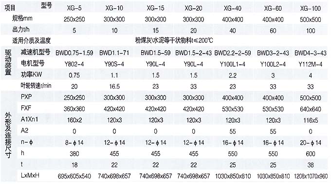 HJ—XG型电动给料机外形尺寸表
