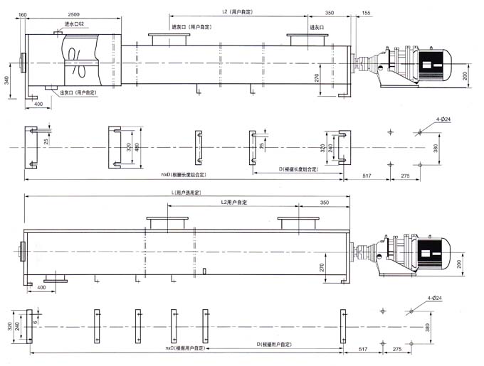 | 螺旋输灰机是火力发电厂除灰系统连续输送粉煤灰的主要设备,根据其工作原理,还可用子水泥、砾石、粮食等物料输送。本厂产螺旋输灰机有干式湿式二种,湿式螺旋输灰机的喷水量可在工作运行中随时调节,供水压力设计为0.4~0.8MPa输灰机身分段制造,机罩密封严密,运行时能在不同位置上卸载,机身长度可在5~70M间选择,超过40M长度的输灰机宜用双端传动结构,工作温度允许200℃。 |